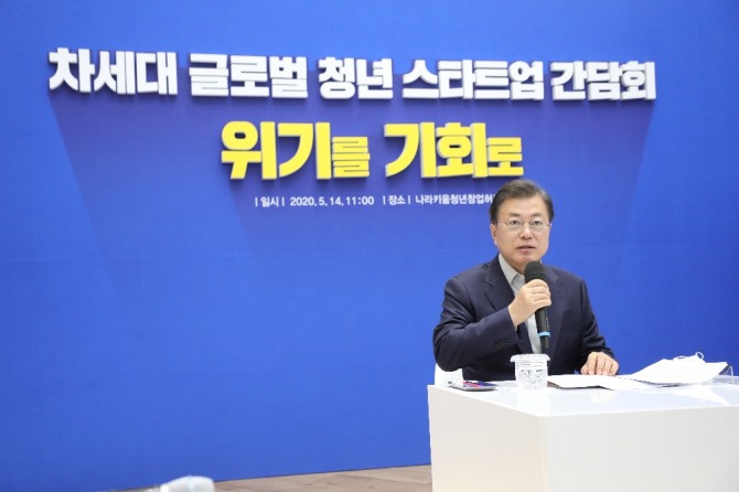 문 대통령은 "우리가 포스트 코로나 시대를 잘 대비하면 스타트업의 새로운 미래를 맞을 수 있다"며 "정부는 비대면·디지털 분야 신산업을 선도해나갈 수 있도록 한국판 뉴딜을 과감히 추진할 것"이라고 말했다.