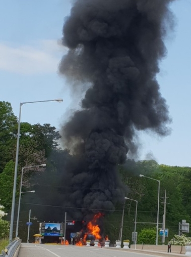 진안 톨게트에서 탱크로리 대형화재 40대 운전자 사망
