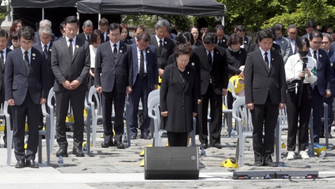 당시 지난해 추도식엔 야권에서는 조경태 최고위원을 단장으로 하는 대표단이 참석했다.