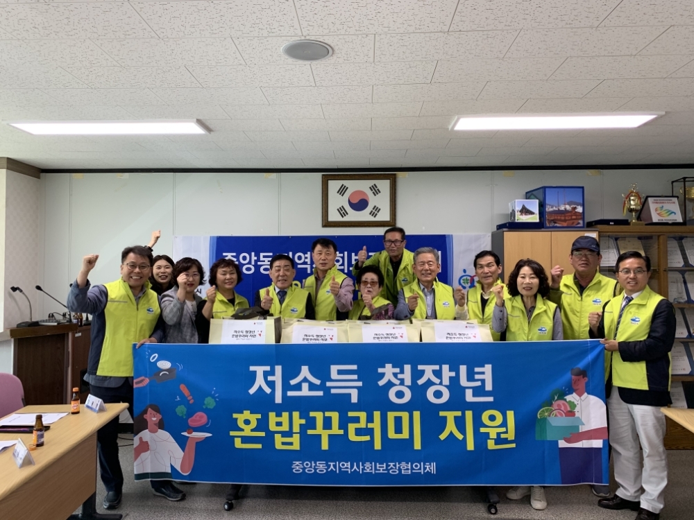 이미지 확대보기중앙동지역사회보장협의체는 아동과 노인에 비해 사회의 관심을 받기 어려운 저소득 청‧장년층에게 간편히 식사할 수 있는 식료품(햇반, 라면, 밑반찬 등)을 지원하자는 취지에서 ‘저소득 청‧장년 1인 가구 혼밥꾸러미 지원 사업’을 착안해냈다.