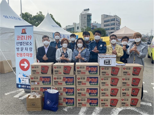 한편, 정각지구대 생활안전협의회는 매년 지역주민들을 위한 봉사활동 (미용 및 어르신 무료점심 제공 등)을 실시했으나, 금년에는 ‘코로나19’로 인하여 봉사활동을 대체하는 의미로 남동구 지역 방역 최일선에서 코로나19 종식에 헌신하고 있는 선별진료소 의료진을 위문하고 응원했다.