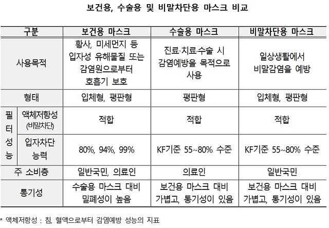 이 마스크는 침방울(비말)을 차단해 감염 예방 효과가 있으면서도 가볍고 통기성이 있는 마스크다.