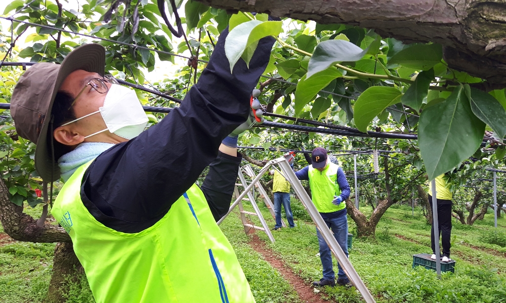 이미지 확대보기농협중앙회 농가소득지원부 등 임직원 15명은 3일 인천 남동농협 관내 농가를 찾아 배 열매솎기 작업을 하며 바쁜 농촌에 힘을 보탰다.