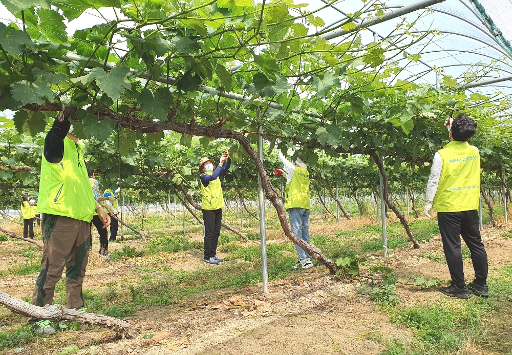 일손돕기에 나선 직원들은 포도농가에서 포도나무 곁순제거와 폐비닐 수거 등 주변 환경을 정리했으며 농업과 농촌의 현실을 같이 체감하고 어려움을 청취하기 위한 소통의 자리도 마련했다.