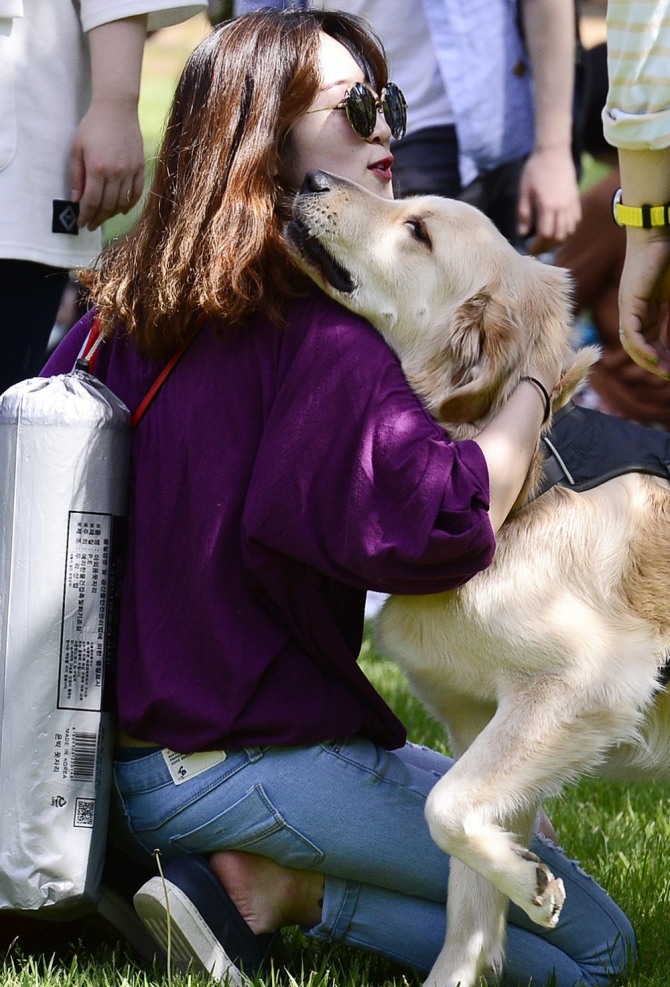 사진은 2016년 5월 반려견과 함께하는 축제 '반함' 행사가 열린 서울 광진구 건국대학교에서 참가자가 반려견을 안아주고 있는 모습. 사진=뉴시스