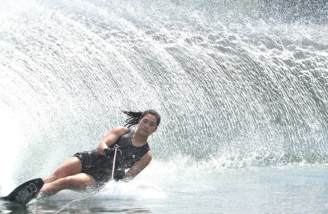 이미지 확대보기경상북도 성주군(郡) 낮 최고기온이 32도를 웃도는 무더운 날씨를 보인 가운데 한 시민이 15일 오후 성주 수상레저 테마파크에서 수상스키를 타며 더위를 식히고 있다. 사진=뉴시스 화요일인 16일은 한낮 수은주가 30도를 웃도는 무더위가 이어지겠다.