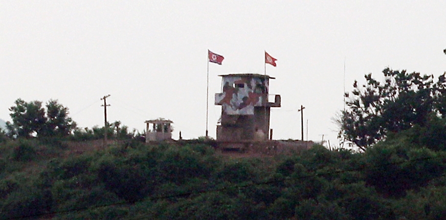 북한 초소에 인공기와 최고사령관기도 다시 게양했다.