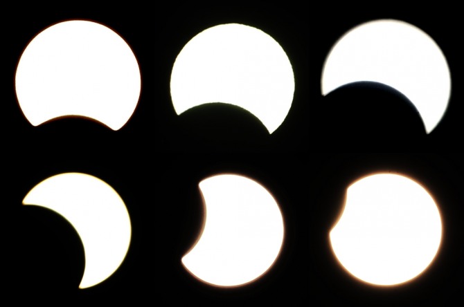한때 구름이 끼는 곳이 있었지만, 전국 대부분 지역에서 부분일식이 관측됐다.