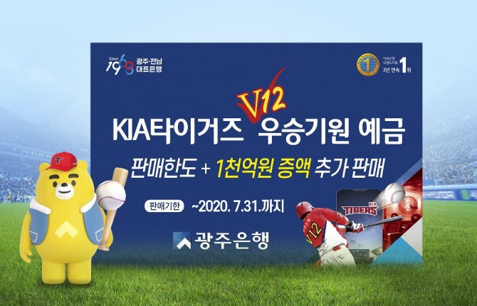 그중 ‘KIA타이거즈 우승기원 예금’은 오는 7월 31일까지 판매함에도 불구하고, 기존에 계획했던 2천억원 판매한도를 모두 소진하고도 고객의 문의가 이어짐에 따라 광주은행은 고객의 성원에 보답하고자 3천억원으로 판매한도를 증액하기로 했다.