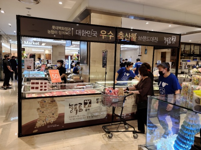 롯데백화점 평촌점 홍천늘푸름한우 판매장 전경. 사진=농협중앙회이미지 확대보기