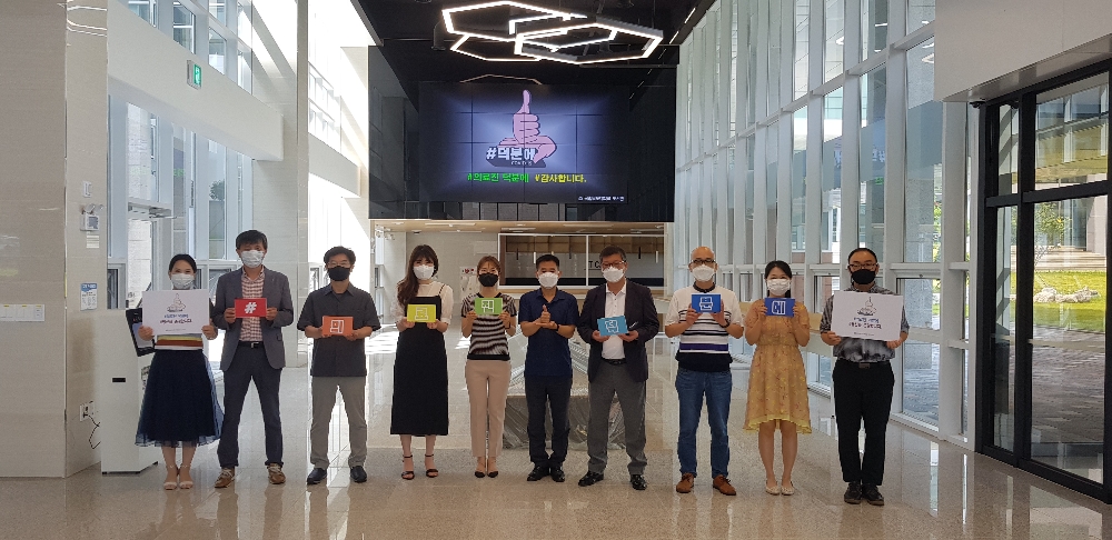 목포대학교 도서관은 제주대학교 도서관으로부터 ‘덕분에 챌린지’ 캠페인 릴레이를 넘겨받아 도서관 전 직원이 함께 모여 의료진에 감사의 메시지를 전했다.