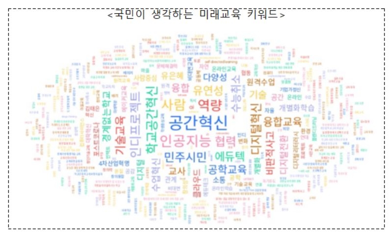 시민들을 대상으로 조사한 미래교육 핵심어(키워드)와 미래교육 대전환 원칙을 함께 확인하고, 전문가의 발제 이후 분야별 토론자(패널)들과 질문생성 토의를 통해 의제를 발굴한다.