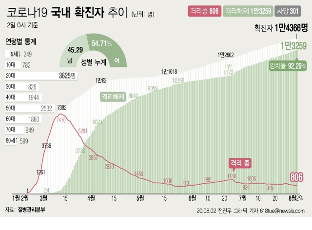 이날 오전 0시 기준 국내 코로나19 확진자는 30명 늘어나 총 1만4366명이다. 이 중 1만3259명이 완치 후 격리해제됐다. 전체 누적환자 중 격리해제 환자를 의미하는 완치율은 92.29%로 집계됐다.