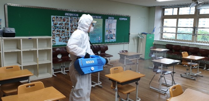 시교육청은 2학기 학교별 개학 일정에 맞춘 선제적이고 예방적인 학교 방역소독은 물론 코로나19 장기화에 대비한 학교 내 일상소독과 생활소독을 강화할 예정이다.