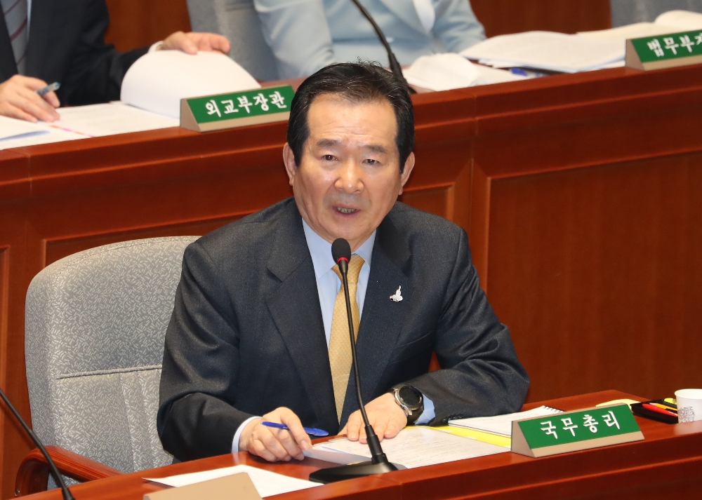 정세균 국무총리는 14일 코로나19 대응과 관련, "확진자가 급증하고 있는 서울시와 경기도에서는 사회적 거리두기를 2단계로 상향조정하는 방안에 준하는 방역 대응조치를 신속하게 검토해 달라"고 말했다.