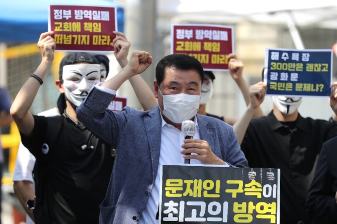 이미지 확대보기사랑제일교회 변호인단은 23일 기자회견을 열고 전 목사의 건강상태에 대해 "특정한 증상은 없고 약간 기침이 있는 것으로 알고 있다"고 설명했다.