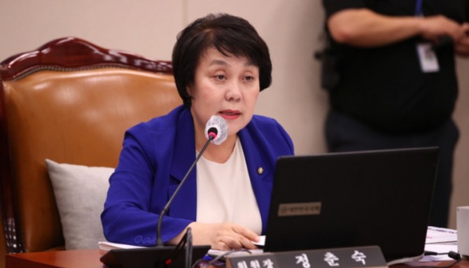 정춘숙 국회 여성가족위원장이 3일 오전 서울 여의도 국회에서 열린 여가위 전체회의를 주재하고 있다. 사진=뉴시스