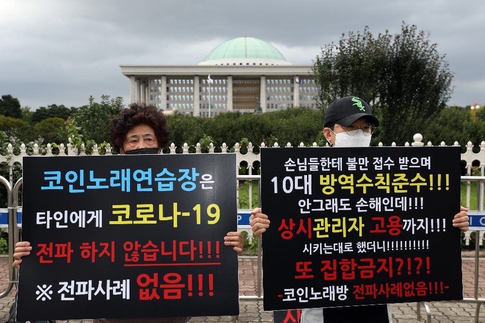 이들은 "지난 4월 2주간의 휴업 권고를 아무 조건 없이 이행했고, 지난 5월에는 50일간의 강제 집합금지 명령을 충실히 따랐다"면서 "코인노래연습장에서의 확진자가 전혀 없음에도, 집회발·교회발·소모임발 확진이 이어지면서 지난 8월부터 또다시 2차 강제 집합금지 명령이 시작됐다. 90일간 영업을 하지 못한 우리 업주들은 너무 지쳤다"고 주장했다.