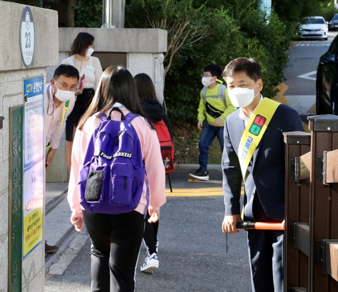 이미지 확대보기장석웅 교육감은 이날 출근길에 목포애향초(교장 장사익)에 들러 학부모회 교통안전 자원봉사자, 주민들과 함께 교문 앞에서 학생들에게 교통질서를 지키도록 안내하고 과 학생과 교직원들을 반갑게 맞이했다.
