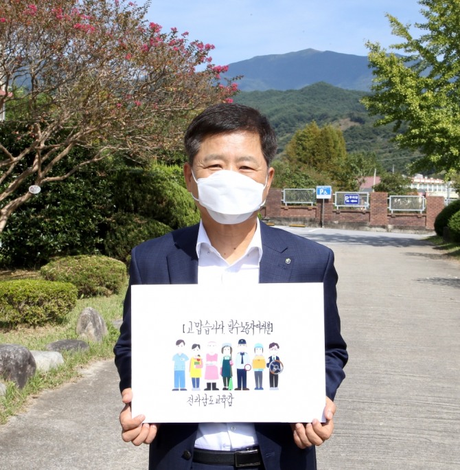 장석웅 교육감은 29일 김한종 전라남도의회 의장의 지명을 받아 이 캠페인에 참여했다. 장 교육감은 ‘고맙습니다. 필수노동자 여러분’이라는 손 팻말을 든 사진을 자신의 사회관계방서비스(SNS)에 올리며, 필수노동자들에게 존경과 고마움을 표시했다.
