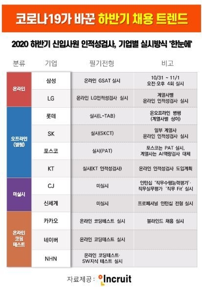 SK, KT, 포스코, 롯데그룹은 오프라인 시험을 유지한다.