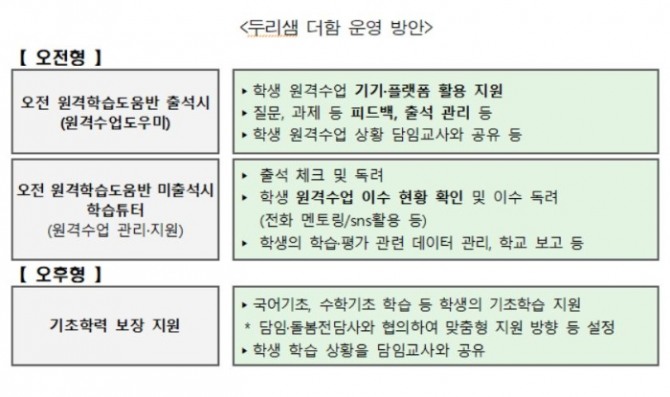 기초학력 '두리샘 더함'은 '오전형'와 '오후형'의 방식 또는 혼합형으로 이뤄진다.