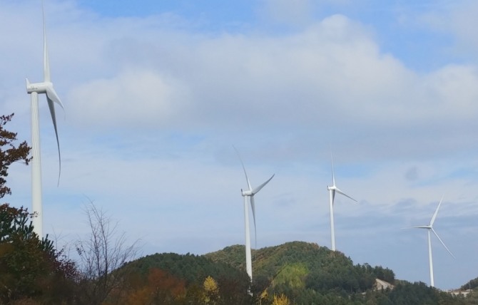 이미지 확대보기지난해 11월 한수원 최초의 총 설비용량 19.2㎿급 대규모 풍력발전단지 청송노래산풍력의 상업운전을 계기로 안마도 220㎿, 영덕 100㎿ 등 해상풍력 개발도 서두르고 있다.