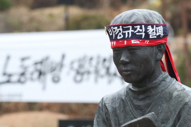 이들은 한목소리로 여전히 위험한 노동환경과 신종 코로나바이러스 감염증(코로나19) 확산 이후 더욱 힘들어진 노동자의 현실을 이야기하며 전태일 정신을 강조했다.