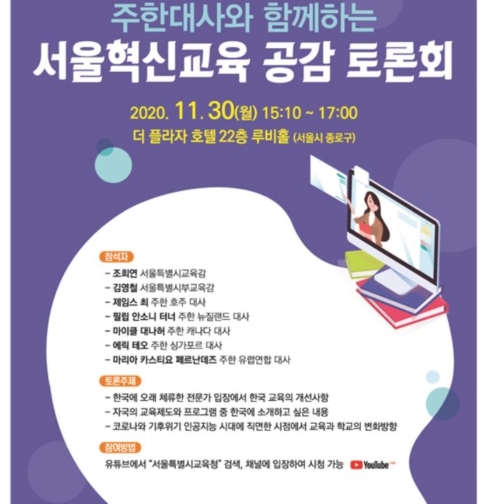 이번 공감 토론회는 교육청과 밀접하게 교류하고 있는 재외공관 중 한국에서 오래 근무한 외교관의 시각으로 본 서울교육에 대하여 생생한 조언을 듣고자 마련됐다.