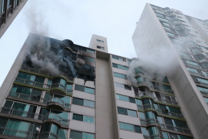 1일 소방당국에 따르면 오후 4시 37분경 경기도 군포시 산본동의 한 아파트 12층에서 화재가 일어났다.