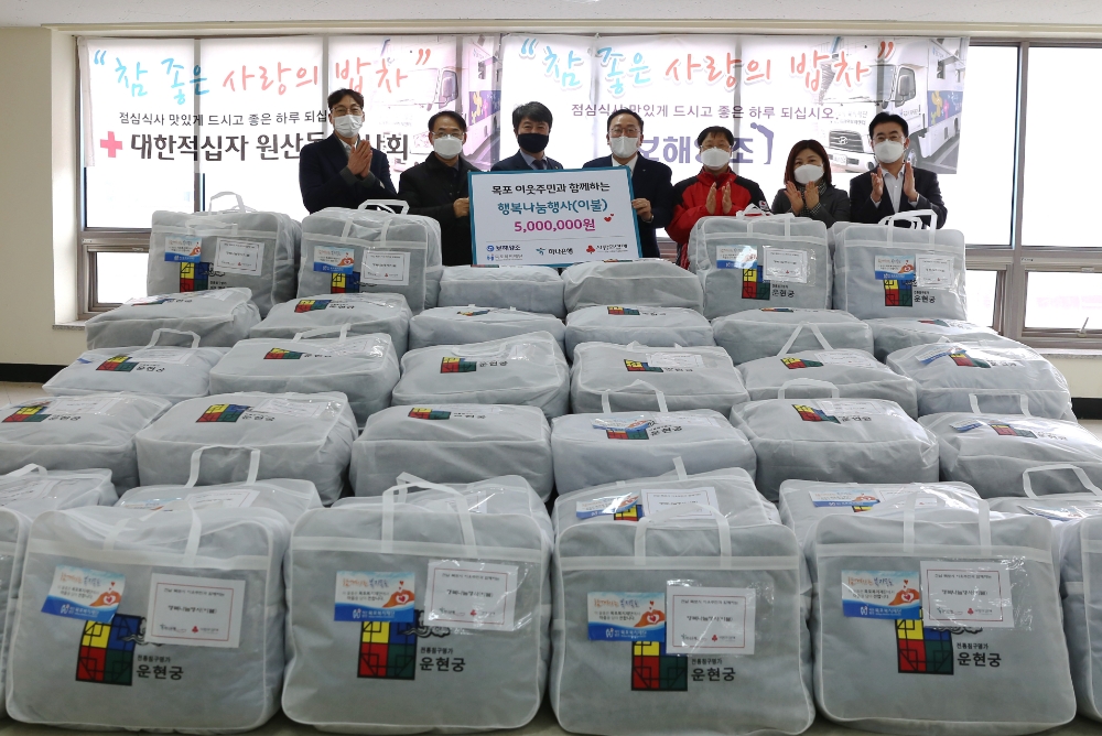 보해양조 관계자는 "코로나19와 한파로 고통받는 이웃들을 위해 하나은행, 목포복지재댠, 사랑의 열매가 합심해서 이불 전달식을 개최하게 됐다"며 "보해는 앞으로도 지역 기업으로서 역할에 최선을 다하겠다"고 말했다.