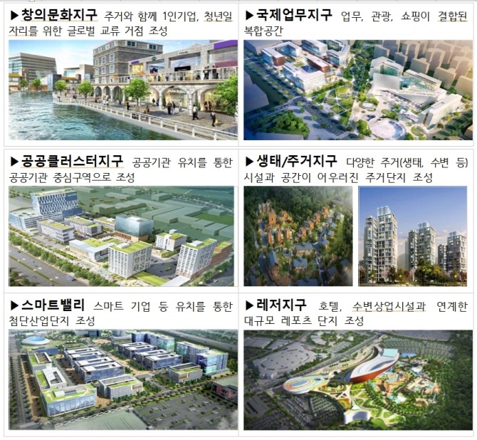 수변도시의 특성을 반영해 도시지구 내 3개 호수와 도심 수로를 설치하고, 주변에 상업특화시설, 생태주거지, 공원 등을 배치해 친수 공간의 활용성을 극대화한다는 계획이다.