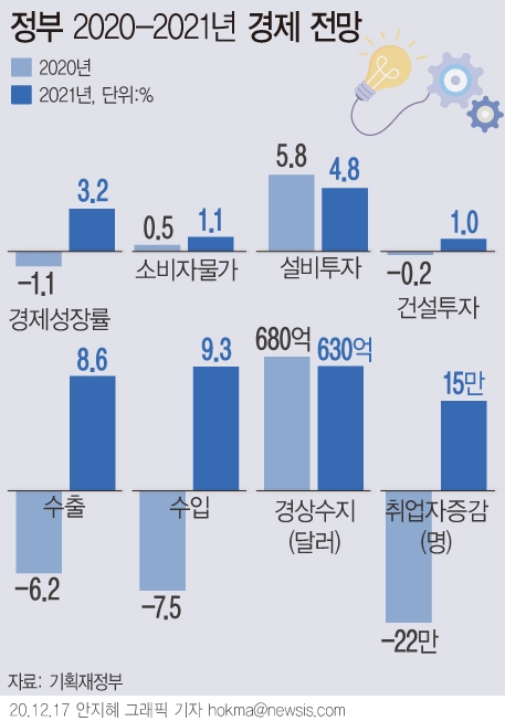 정부의 내년 3.2% 성장 전망은 올해 말과 내년 초부터 선진국을 중심으로 코로나19 백신 접종이 시작돼 하반기 중 백신 상용화를 전제로 삼았다고 했다.