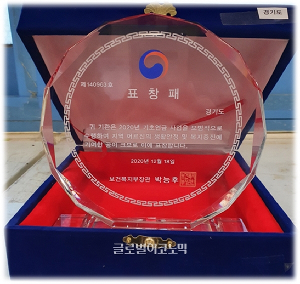경기도는 보건복지부가 실시한 ‘2020년 기초연금 사업 유공 기관 평가’에서 우수 광역자치단체로 선정돼 보건복지부장관 표창과 포상금 1,300만원을 수상했다고 24일 밝혔다.