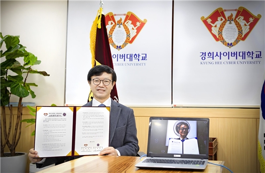 경희사이버대학교 변창구 총장은 “이번 협약으로 양교가 협력하여 새로운 언택트 교육 플랫폼을 제시할 수 있는 계기가 될 것이다. 향후 언택트, 비대면 등 온라인 수업이 보다 화두가 될 것이다.”면서 “우리 대학의 온라인 교육과정과 수업 제공을 통해 지역의 교육 격차 해소 등 대학의 사회적 책무를 이행하는 것이다. 향후 양교가 실천적 협력을 위해 더욱 노력하자”고 협약의 의미를 전했다.