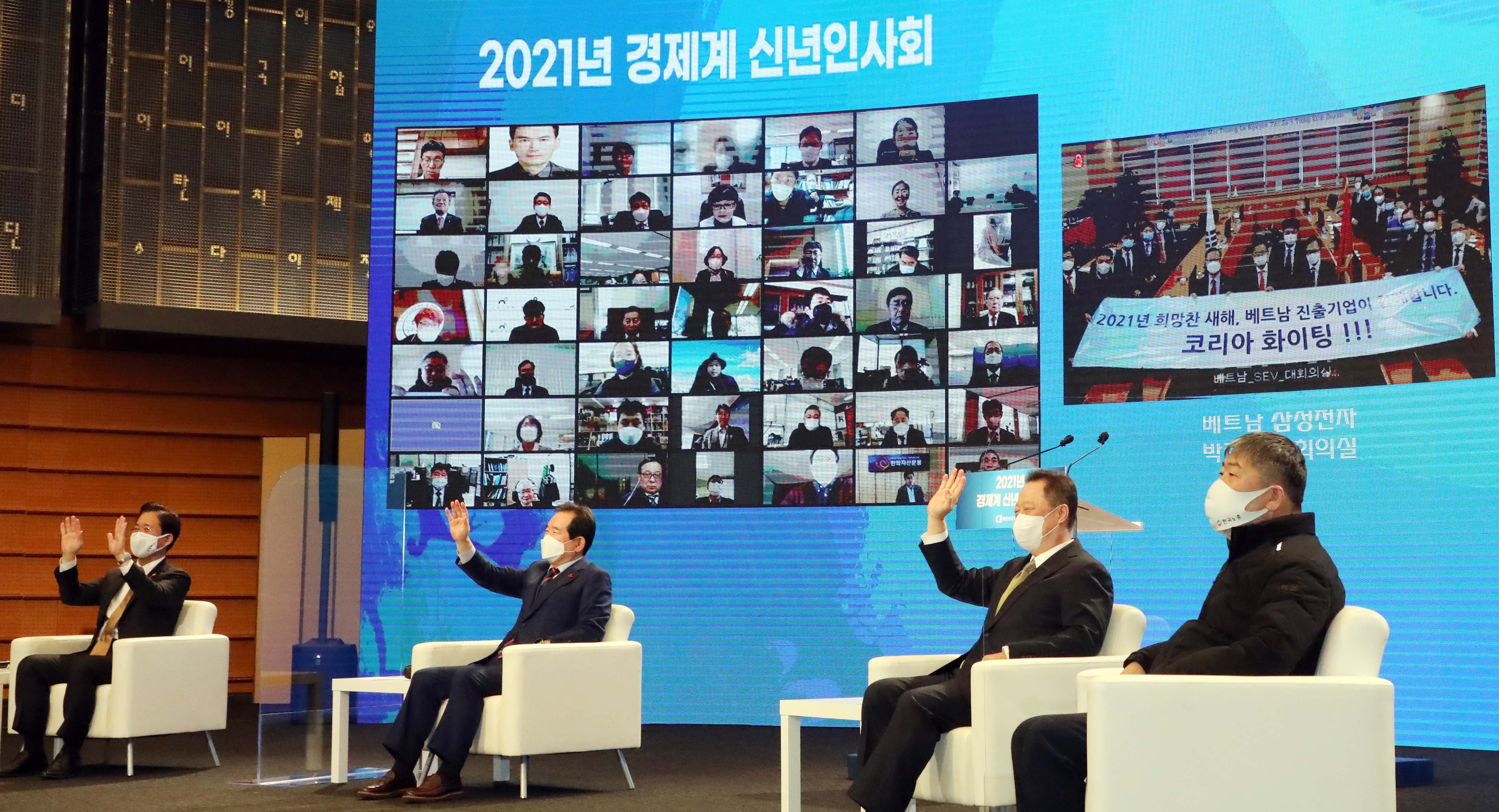 정세균 국무총리는 인사말에서 "2020년은 '다사다난'이라는 말로도 표현하지 못할 만큼 고되고 험난한 시간이었다"며 "지난 한 해 한국 경제를 위해 최선을 다해준 경제인들에게 진심으로 감사드린다"고 말했다.