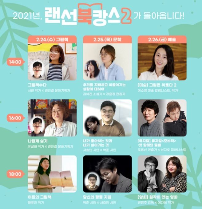 '랜선으로 떠나는 그림책 여행'은 '눈물바다'의 서현 작가와 유설화 작가, 황유진 작가와 함께 그림책 제작과정과 에피소드, 인생 그림책에 대해 알려준다. 그림책 프로그램은 어린이도 참여할 수 있다.