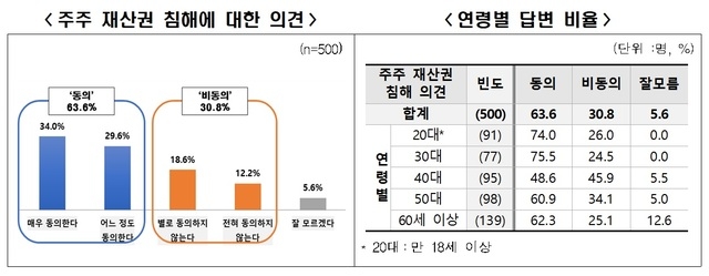 이미지 확대보기20대 이하 74%, 30대 75.5% 등 젊은 층에서 재산권 침해라는 지적이 많은 것으로 나타났다.