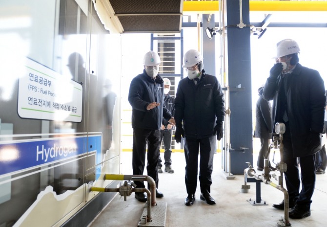 성 장관은 인사말을 통해 "세계 최초 수소법 시행으로 수소경제로 나아가기 위한 토대가 완비됐다"면서 "친환경 발전소인 수소연료 전지가 우리나라 탄소중립을 선도할 것"이라고 강조하고 현장 근로자들을 격려했다.