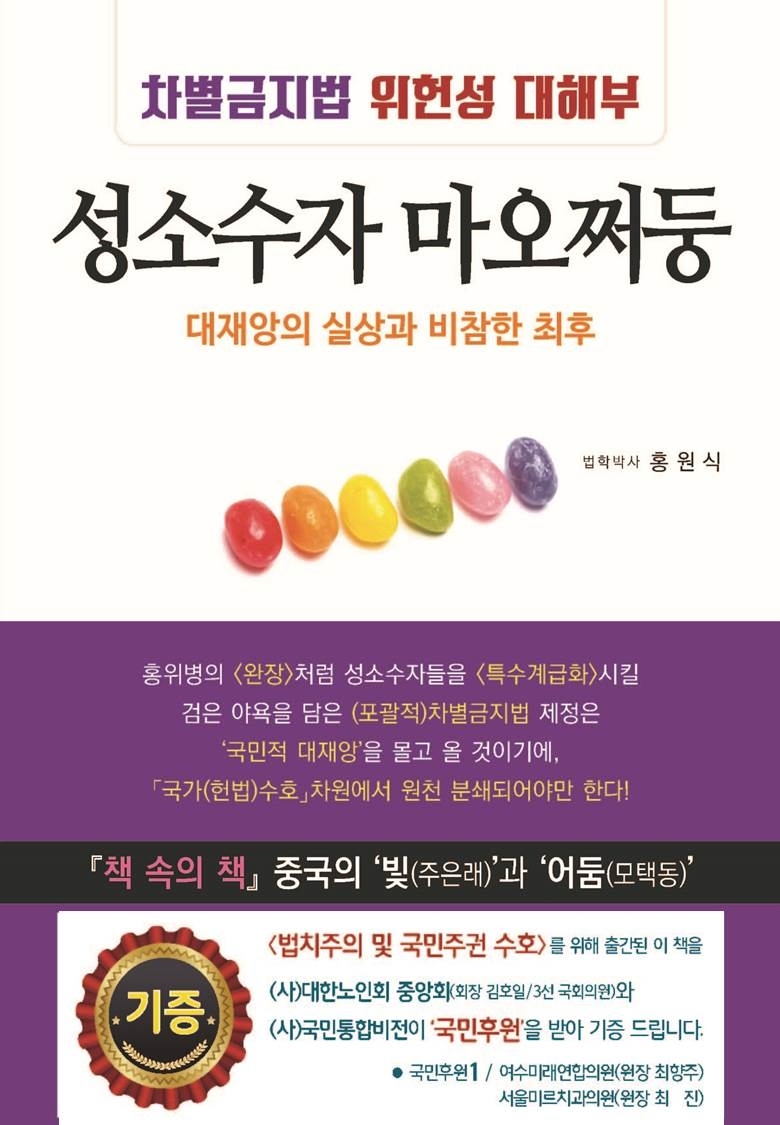 국회에 제출돼 있는 차별금지법의 위헌성을 논증한 책인 '성소수자 마오쩌둥'(저자 홍원식 박사, 국민통합비전 이사장)가 국회의장과 여야 대표, 국회의원들에게 전달됐다.이 책은 차별금지법의 폐해를 쉽게 알 수 있도록 '도미노식 해악 사례'와 차별금지법 찬성론자들이 전가의 보도처럼 애용하는 미국연방대법원의 동성애 합법화 판례의 허점을 대법원의 '이재명 판결'과 비교분석하고 있다.