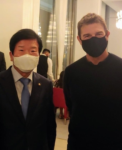 이미지 확대보기박병석 국회의장이 11일(현지시간) 공식 방문 중인 아랍에미리트(UAE)에서 할리우드 스타 톰 크루즈와 만났다.