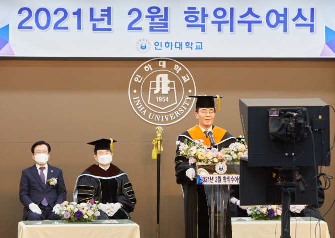 한편, 이날 학위수여식은 코로나19 감염 확산 방지를 위해 온라인 녹화 중계로 진행됐다. 기념식 영상은 인하대 홈페이지와 학위수여식 전용 홈페이지, 유튜브를 통해 확인할 수 있다.