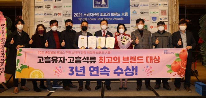 송귀근 군수는 “고흥유자와 고흥석류를 모르는 사람은 없지만 얼마나 몸에 좋은지 아는 사람은 많지 않다”며 “3년 연속 영광스러운 대상에 걸맞게 고흥유자와 고흥석류의 우수성을 알리는데 주력해 농가 소득 증대로 이어질 수 있도록 노력하겠다”고 소감을 전했다.