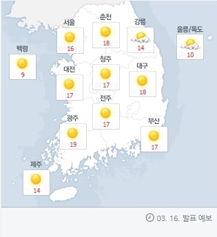 내일 전국의 오전 예상 최저 기온은 -4∼6도, 오후 예상 최고 기온은 9∼19도다. 내륙 지역을 중심으로 낮과 밤의 기온차가 커 건강 관리에 각별한 주의가 필요하다.