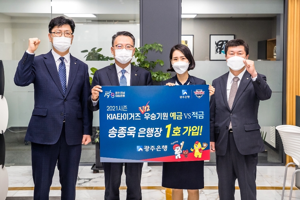 올해 코로나19 장기화로 힘들고 지친 지역민들에게 봄과 함께 다가온 2021 프로야구 시즌이 또다른 희망과 도전이 되길 바라며 출시한 ‘KIA타이거즈 우승기원 예·적금’은 KIA타이거즈의 프로야구 성적에 따른 다양한 우대금리를 제공함과 동시에 출시 이벤트도 진행한다.