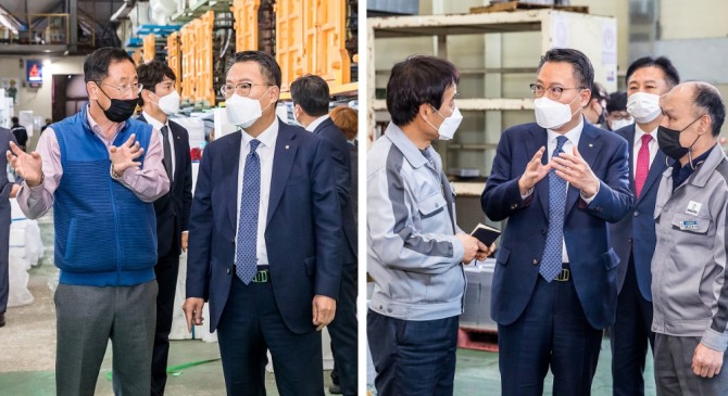 이미지 확대보기7일 광주은행에 따르면 송종욱 광주은행장은 지난 5일 전남 고흥군에 소재하는 스티로폼제품 제조업체 ㈜효경(대표 최인효)과 광주광역시 광산구 용동에 소재하는 자동차부품 제조업체 ㈜대신테크(대표 김종식)를 방문해 사업장을 직접 둘러보고, 대표 및 직원들과 면담을 실시했다. 특히 코로나19에 따른 피해현황을 꼼꼼하게 살피며 적기의 금융상담 및 지원이 이뤄질 수 있는 방안을 마련하기로 했다.