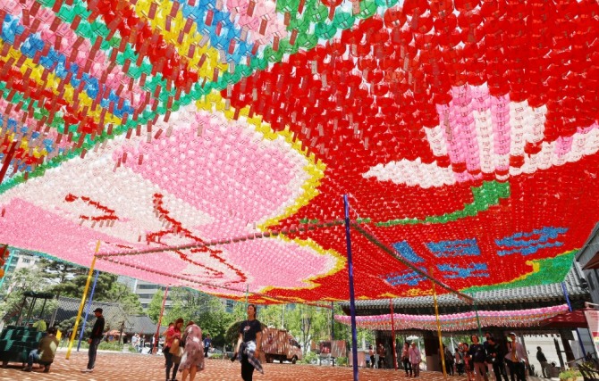 연등 행렬 다음날 조계사 앞 우정국로 일대에서 열렸던 전통문화 마당 등 시민 참여 행사는 온라인으로 전환돼 다음달 16일 열린다. 이틀 전인 14일부터는 서울 강남 봉은사와 청계천, 우정국로 일대에서 전통 등 전시회가 있을 예정이다.
