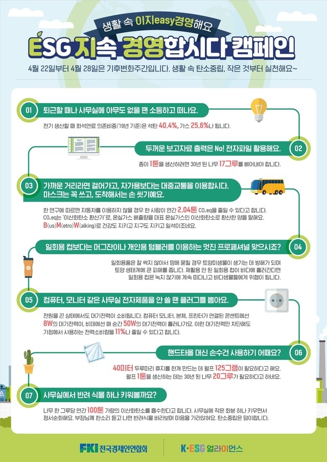 이미지 확대보기전국경제인연합회는 K-ESG 얼라이언스와 공동으로 '이지 경영 캠페인'에 나선다.