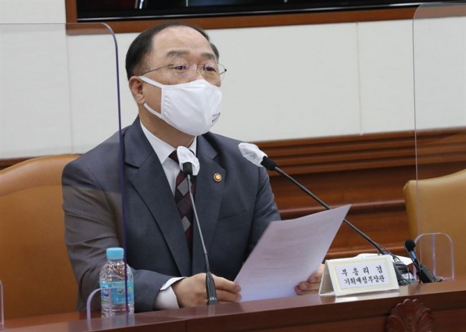 코로나19 백신과 관련, 최근 보건복지부를 중심으로 원포인트 추가경정예산안을 편성해야 한다는 주장에 대해서도 "기재부에서 전혀 계획이 없는데 그런 얘기는 적절하지 않다"고 일축했다.