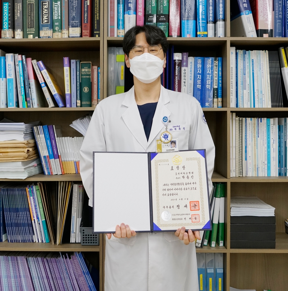 박용진 교수는 “코로나19 대유행 시기에 응급실에 내원하는 환자들이 어느 때보다 큰 애로를 겪고 있다”면서 “앞으로 감염병 대응뿐만 아니라 중증 응급환자의 진료에 더욱 만전을 기하라는 의미로 알고 최선을 다 하겠습니다”고 수상 소감을 밝혔다.